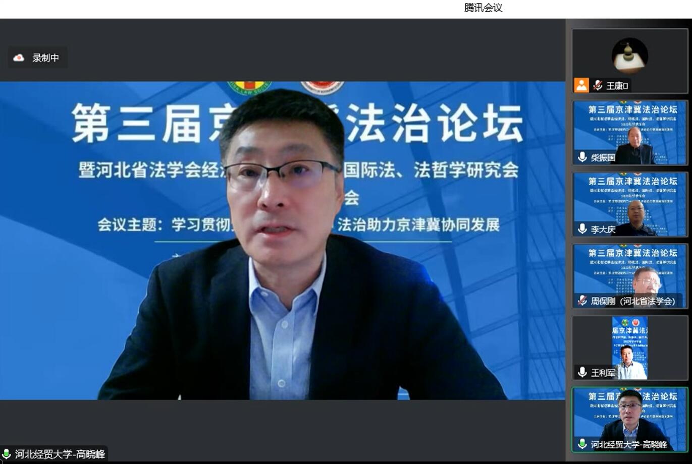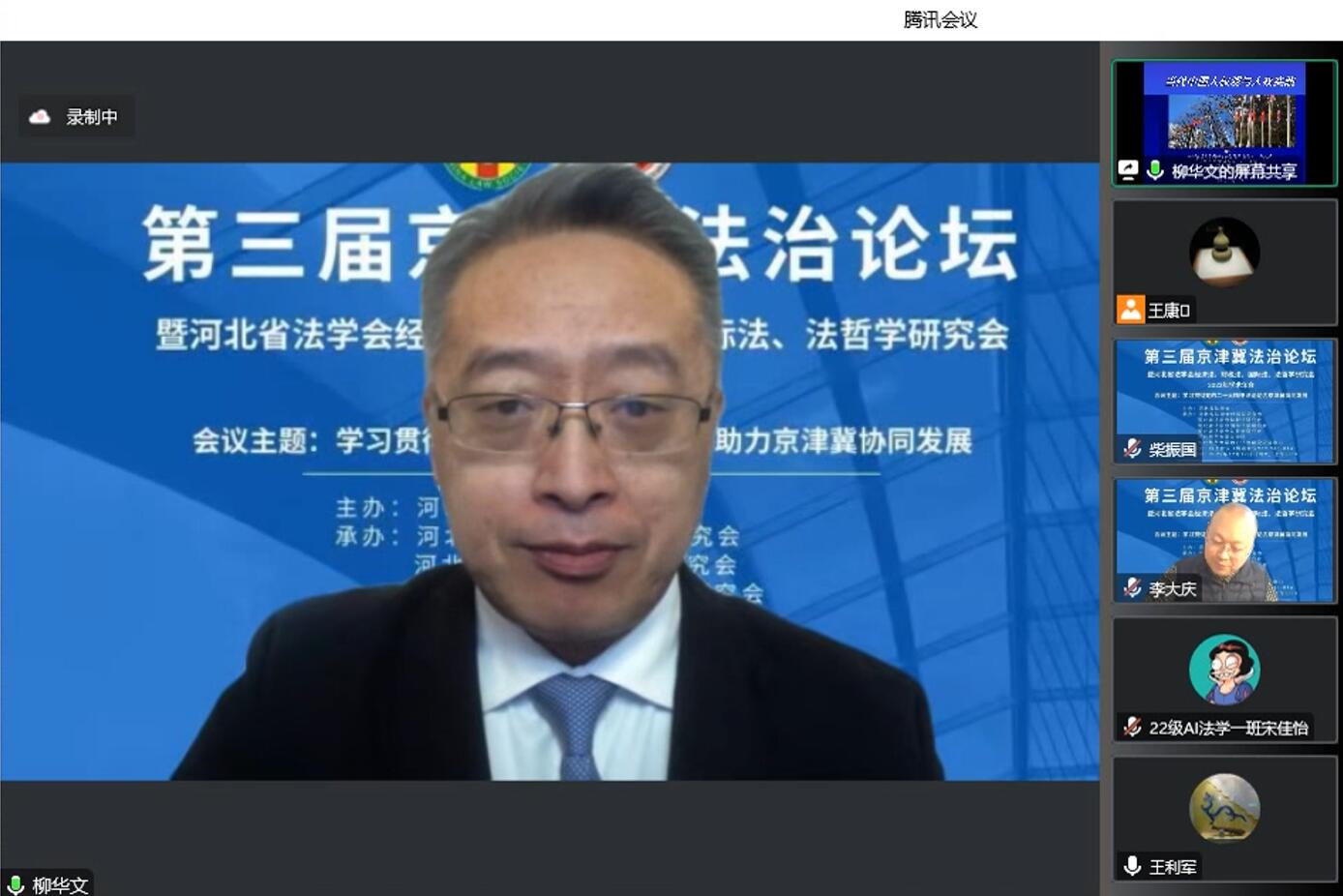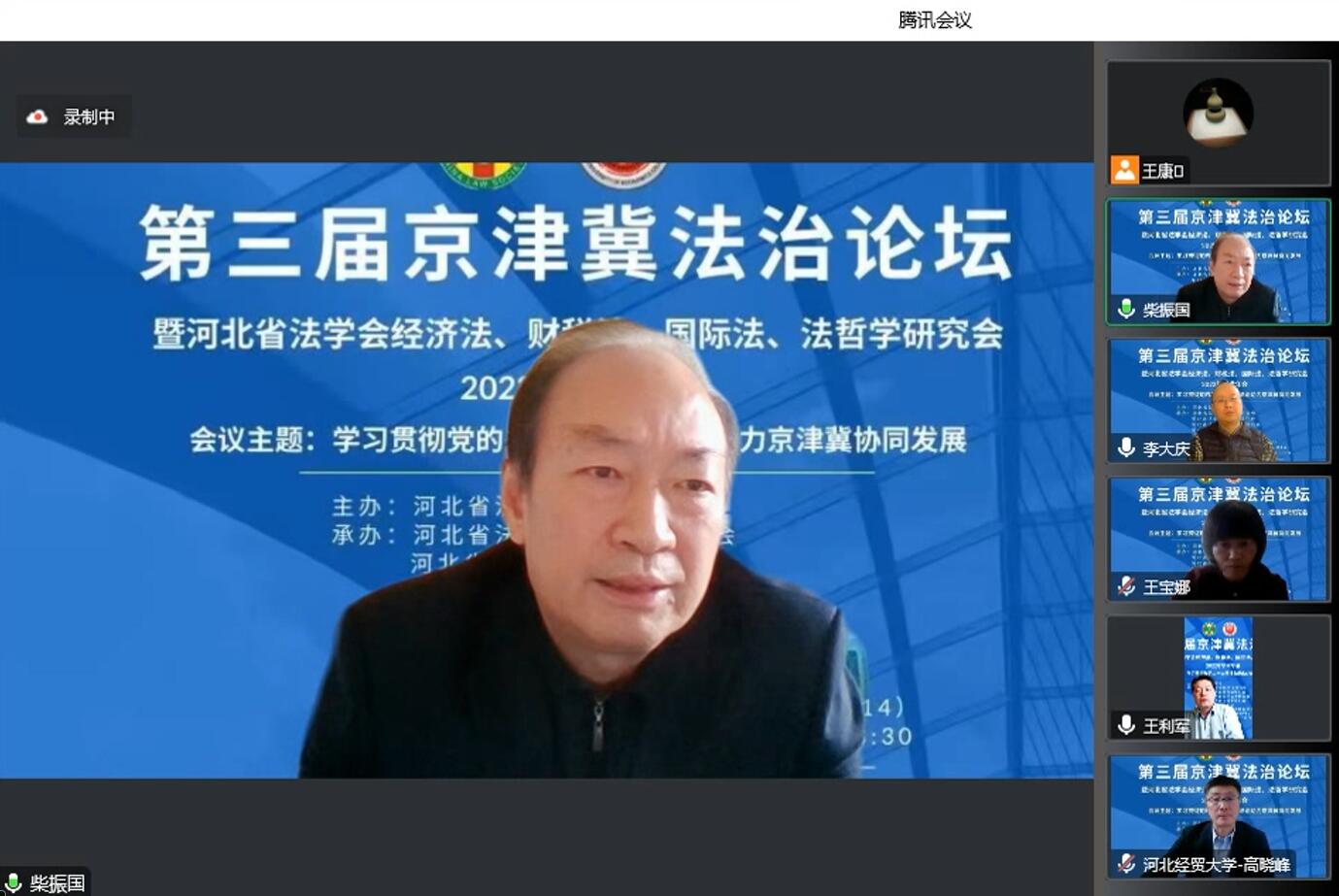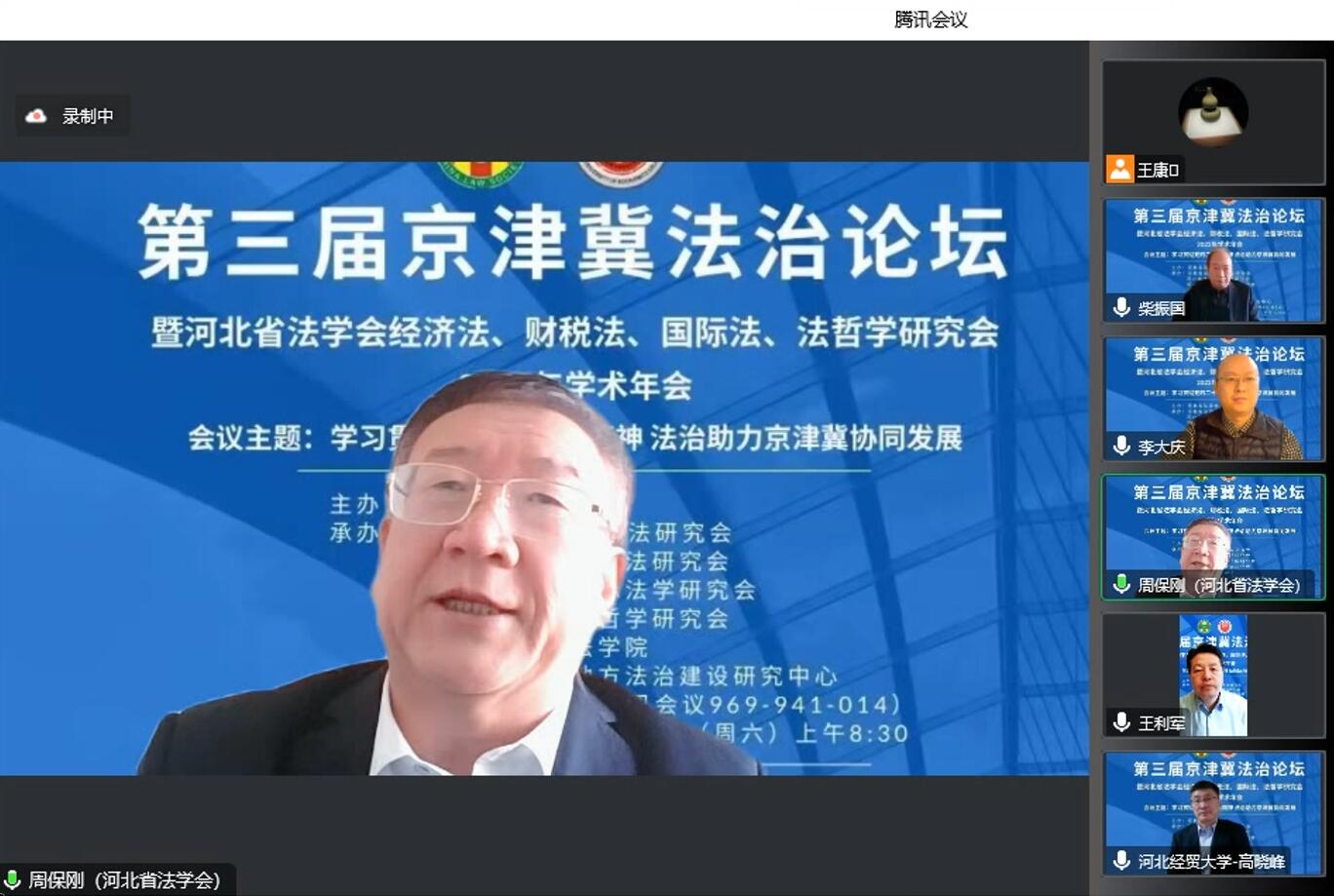 12月17日,第三届京津冀法治论坛暨河北省法学会经济法、财税法、国际法、法哲学研究会2022年学术年会顺利召开。本次论坛由河北省法学会主办,相关学科研究会、太阳成tyc33455ccwww、太阳成tyc33455ccwww地方法治建设研究中心承办。会议主题是“学习贯彻党的二十大精神 法治助力京津冀协同发展”,来自中国社会科公司大学、河北大学、燕山大学、河北工业大学、河北金融公司、河北省社会科公司、河北省高级人民法院等院校和实务部门的专家学者以及师生270余人参会。